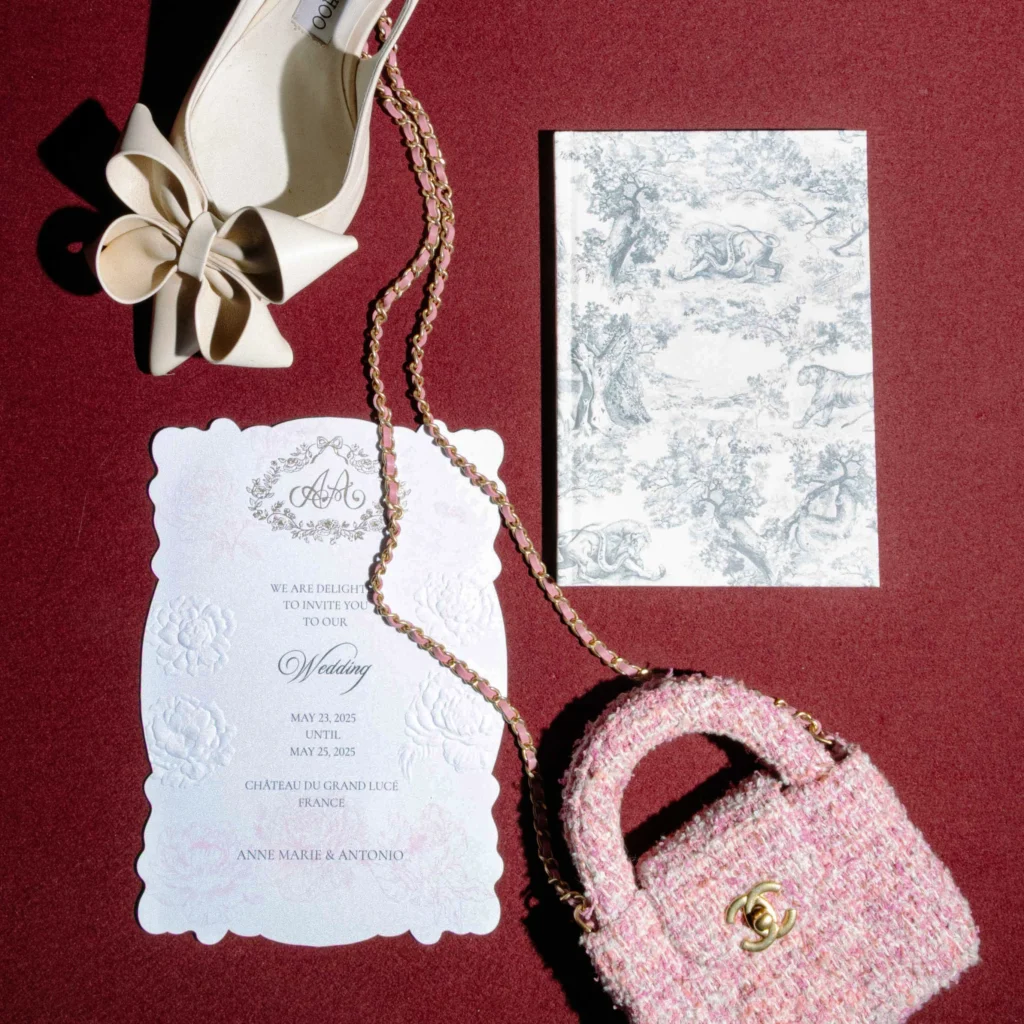Für diese Hochzeit im Château du Grand Lucé in Frankreich entstand eine Papeterie, die von Haute Couture Romantik à la Française inspiriert ist.